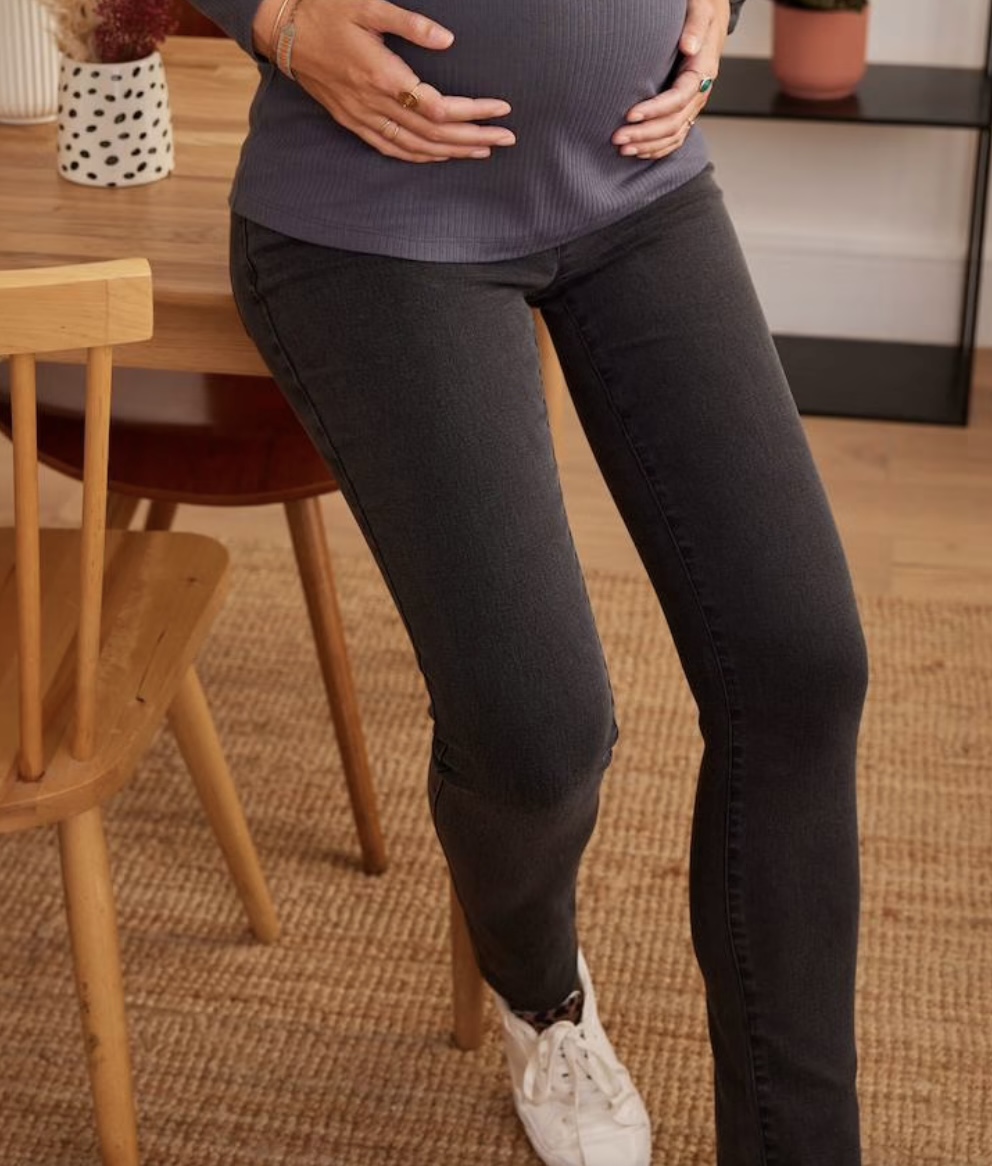 شلوار جین کشی بارداری با کش و دکمه رگلاژ شکم رنگ مشکی